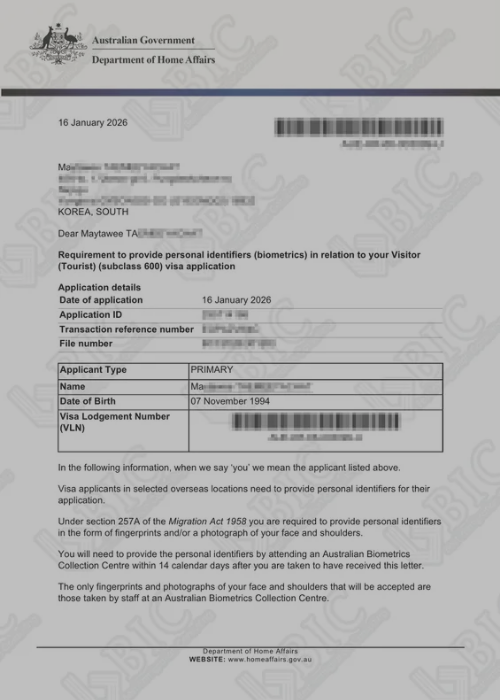 성공사례 + [호주] TA******님 호주 여행비자(SC 600) 생체인식(Biometric) 요청서 [호주] VA*******님 호주 여행비자(SC 600) 생체인식(Biometric) 요청서 [호주] MA*******님 호주 여행비자(SC 600) 접수완료 [호주] VA*******님 호주 여행비자(SC 600) 접수완료 [호주] 전**님 호주 여행비자(SC 600) 접수완료