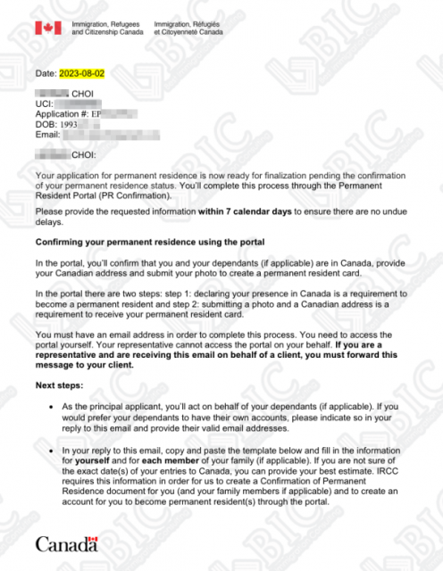 [캐나다] 나**님 MB주 MPNP, 영주권 eCOPR 발급완료