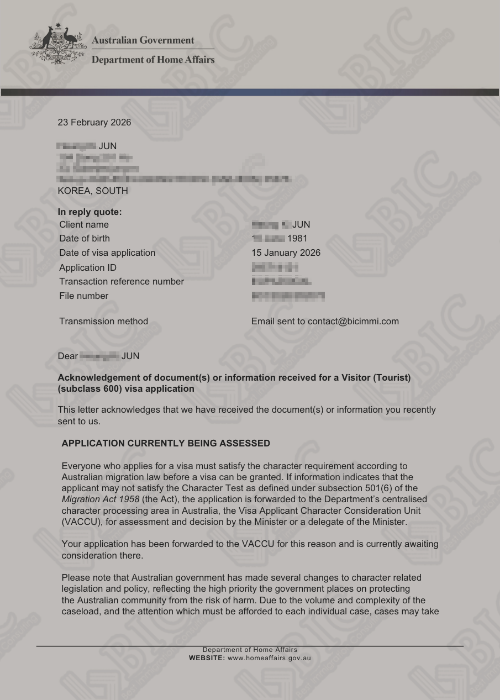 성공사례 + [호주] 전**님 호주 여행비자(SC 600) 이민성 레터발급 [호주] TA******님 호주 여행비자(SC 600) 생체인식(Biometric) 요청서 [호주] VA*******님 호주 여행비자(SC 600) 생체인식(Biometric) 요청서 [호주] MA*******님 호주 여행비자(SC 600) 접수완료 [호주] VA*******님 호주 여행비자(SC 600) 접수완료