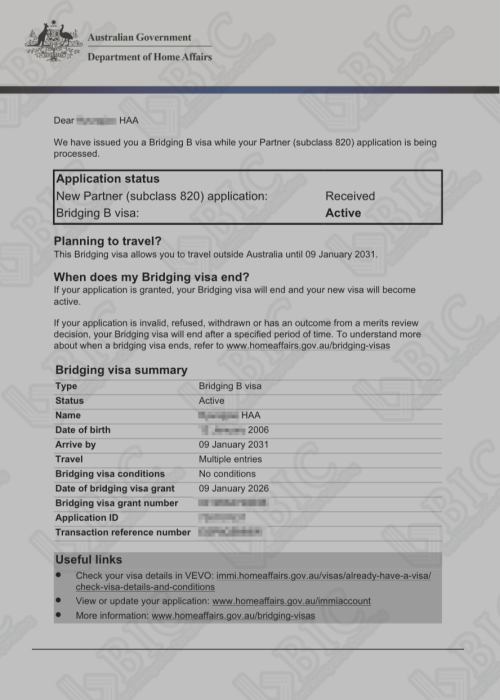 [호주] 송**님 호주 파트너비자, 브릿징비자 B (BVB) 승인완료