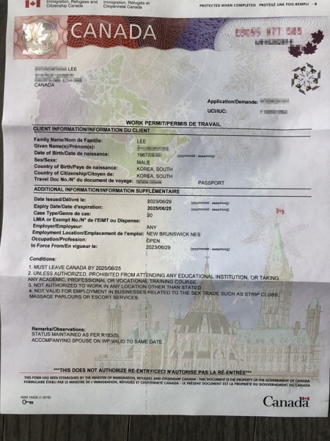 [캐나다] 전**님 NB주 AIP, Endorsement 승인완료