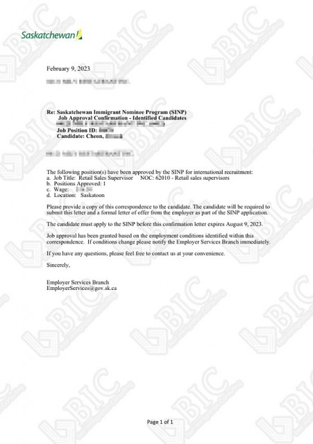 [캐나다] 박**님 AB주 AAIP, 잡오퍼(Job Offer)발급완료