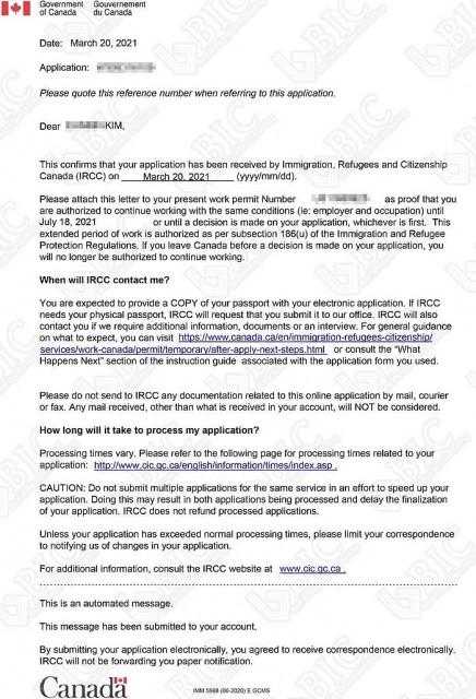 [캐나다] 김**님 NB주 워크퍼밋(Work permit) 승인완료