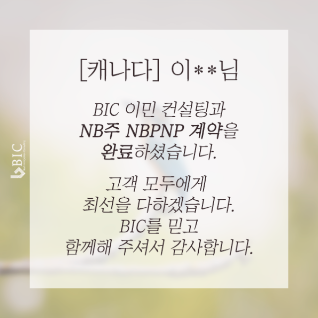 [캐나다] 김**님 AB주 영주권 수속 계약 완료